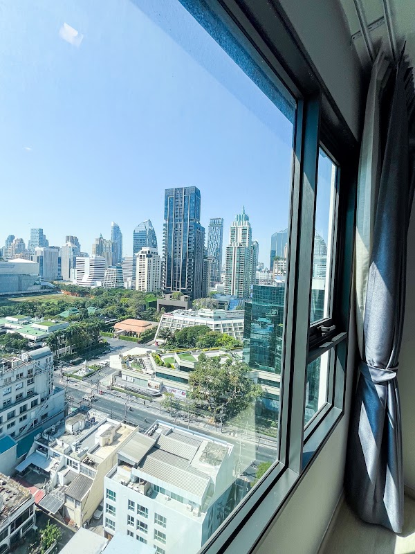 Experience a sophisticated urban lifestyle! 💖 This beautiful minimalist room offers a stunning, unobstructed view of Central Embassy ✨ at Life One Wireless, a prime location right next to BTS Phloen Chit, ready for immediate move-in!